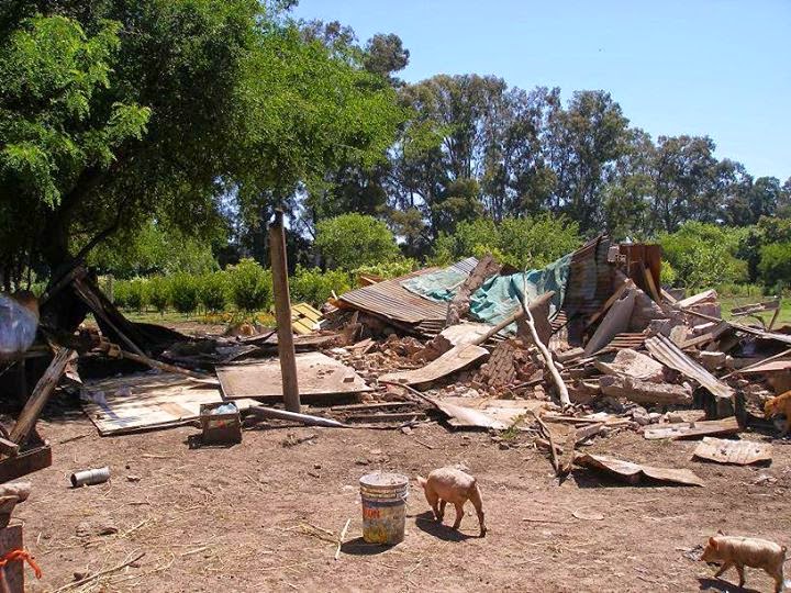 A una semana de cumplirse el salvaje desalojo de la flia Velazquez sin previo aviso, la familia se encuentra acampando y subsistiendo en la puerta del predio, acompañado por familiares, vecinos y organizaciones que solidarizaron con la familia. Hasta al momento son varios ya los animales encontrados destrozados entre los escombros (perros, cerdos y gallinas, mas varios animales heridos). Cada día la familia no deja de sorprenderse dando cuenta de alguna perdida nueva.