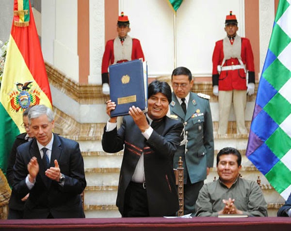 La ley de la Madre Tierra y Desarrollo Integral para Vivir Bien, promulgada por el presidente del Estado, Evo Morales, el 15 de octubre, prohibe la concentración de la propiedad de la tierra y el latifundio; el uso de transgénicos en Bolivia y crea un fondo de justicia climática.