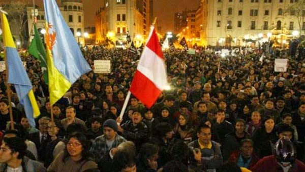 Unas tres mil personas se concentraron el jueves en la Plaza San Martín de Lima para rechazar la promulgación de la nueva ley de trabajo juvenil.