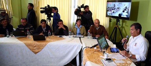 Durante un conversatorio con los medios de comunicación, el Presidente leyó los mensajes recibidos. El primero, dirigido al alcalde de Tacabundo, enviado a las 4 hora local decía: “¿Qué has pensado? ¿Qué eres quien ha salvado al pueblo? Hoy te matamos junto con el Correa. Ya lo verás». El segundo mensaje, enviado un minuto más tarde, decía: «Ya lo verás hoy como mueren muchas personas en el parque. Está visto”.