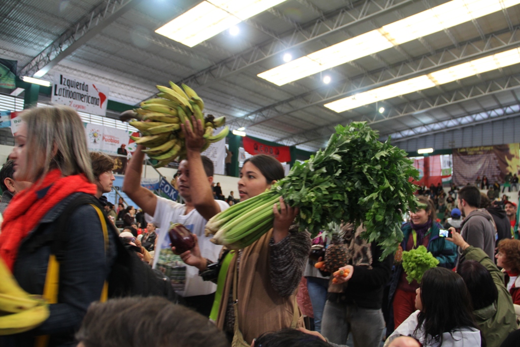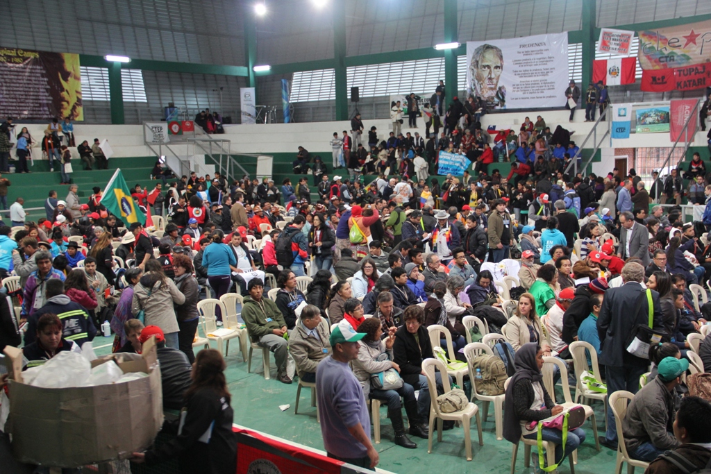 Miles de banderas flamean en lo alto, mostrando la presencia de los representantes de movimientos sociales, pueblos originarios, cooperativas, organizaciones políticas, movimientos de trabajadores informales, entre los más destacados, de Nuestramérica y también de otros continentes, como Europa, en donde también se hallan en un momento particular de crisis.