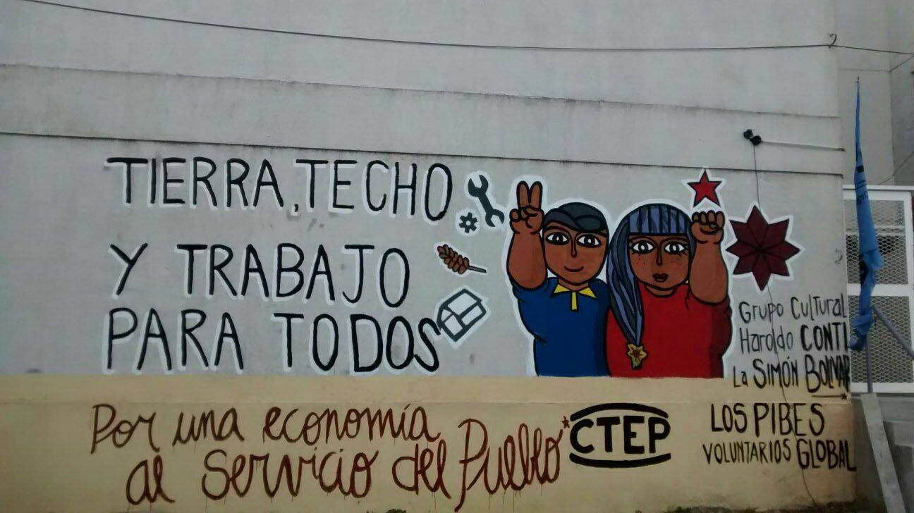 En el Paseo de la Economía Popular “Martin Oso Cisneros” ubicado en la intersección de las calles Pedro de Mendoza y Ministro Brin, la actividad se llevo a cabo en el terreno que linda con la Cooperativa de Vivienda Los Pibes Co.Vi.L.Pi. Se pinto un colorido mural con la leyenda “Tierra, Techo y Trabajo para todos”, con el fin de reacondicionar el espacio de la feria, que actualmente se realiza una vez por semana y también se pintaron los conteiners que albergarán equipos de frío para el mantenimiento de los alimentos.