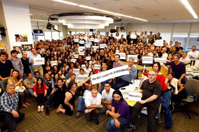 [FMR 24/11/15] Los Trabajadores de La Nación S.A. salieron rápidamente a despegarse del editorial del medio en el que trabajan y manifestaron su absoluto repudio al editorial que reivindica e intenta desresponsabilizar a los asesinos de la última dictadura militar que se hallan presos por sus crímenes.Todo un amplio sector ligado al periodismo y a la defensa y cuidado de los derechos manifestó su enérgico rechazo a un editorial que intenta apropiarse de los resultados del acto electoral del día 22 de noviembre.