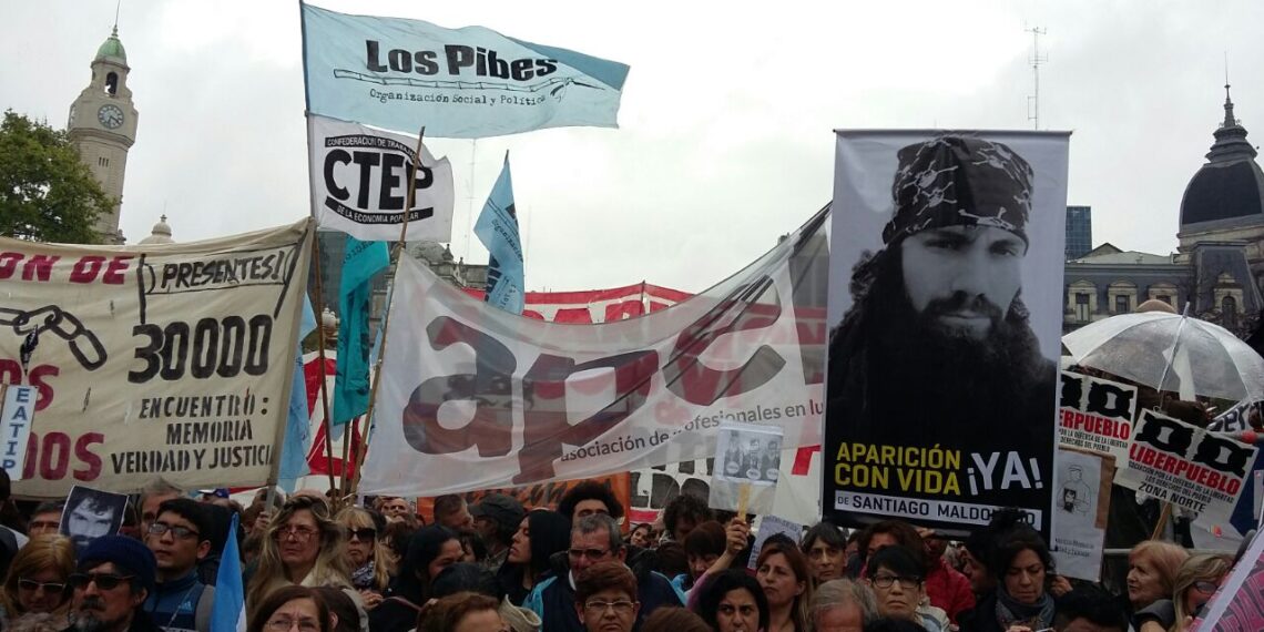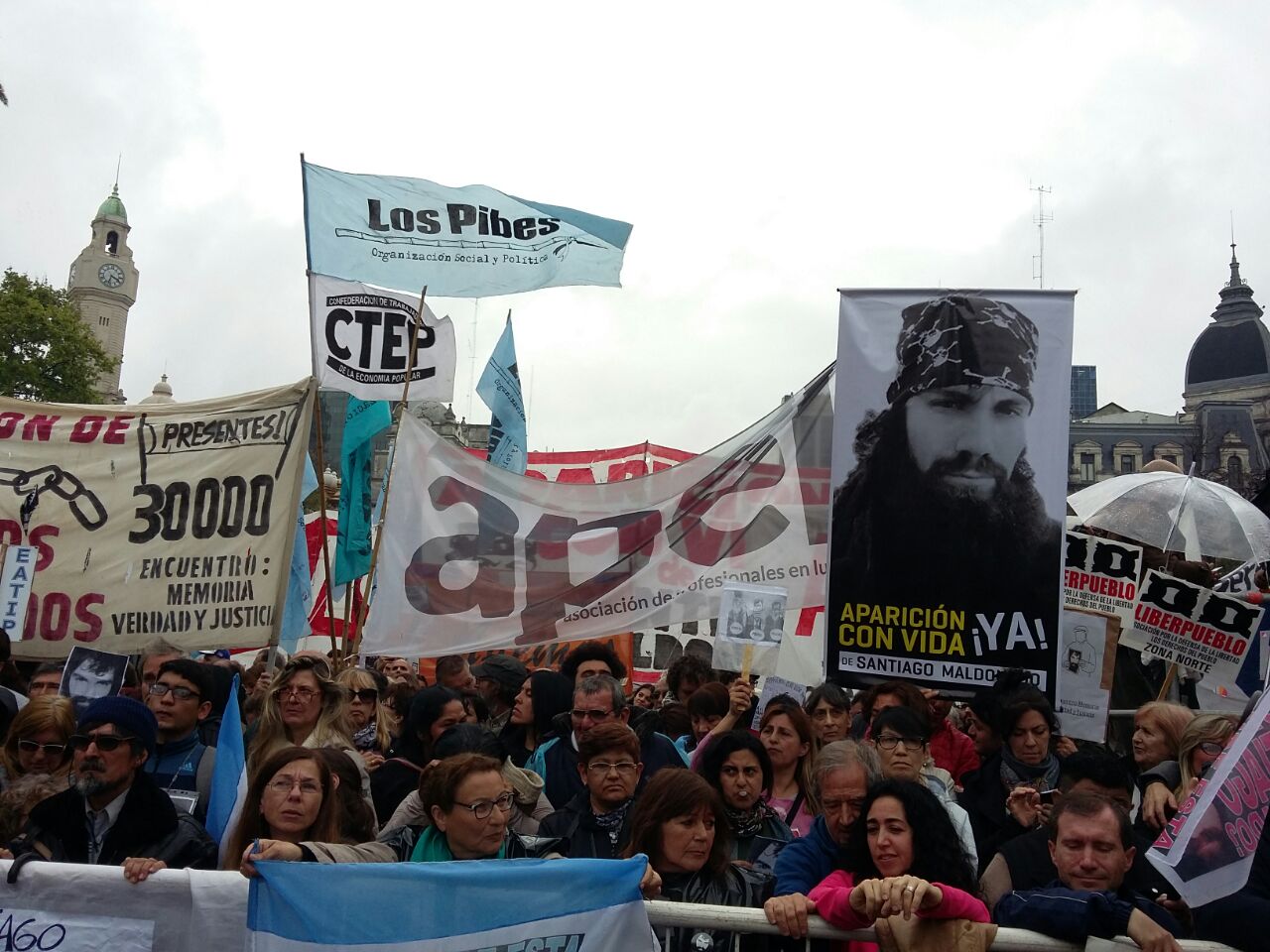 El acto finalizó con las palabras de Sergio Maldonado entre aplausos de la gente, diciendo que “somos personas con derechos, personas que exigimos Justicia. Santiago te estoy buscando, te sigo y te seguiré buscando”