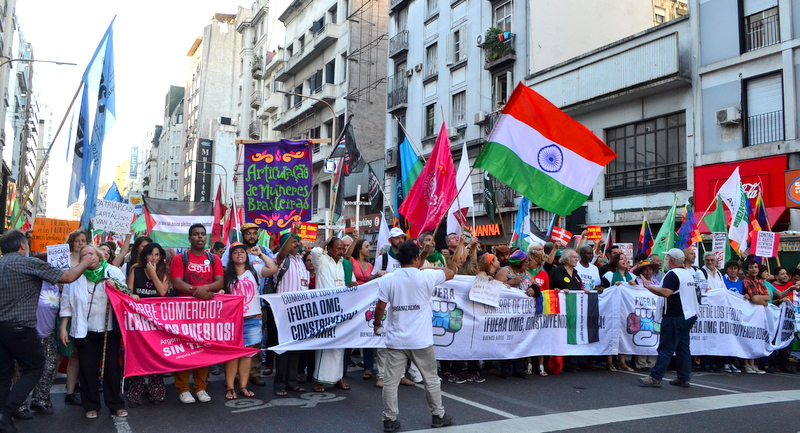 Por otro lado, la Confederación de Trabajadores de la Economía Popular estuvo presente acompañando la movilización, donde entrevistamos a Lito Borello, secretario de DDHH de la CTEP, quien repudio la presencia de la OMC, diciendo: “Vienen a imponer reglamentaciones, leyes y medidas económicas, políticas y sociales en detrimento de los sectores populares, y que solamente benefician a las minorías poderosas económicas, financiares y comunicacionales”. Además expresó que “el derecho a la protesta social es un derecho del siglo XXI, ya que los pueblos ante un proyecto de muerte, tenemos el derecho legitimo de construir otro mundo posible”.