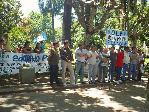 PP: Después de lo que fue la perdida de nuestro compañero en 2005, la organizaron y la comunidad de San Martín esta organizando este homenaje para recordarlo, por su recorrido en la militancia, fue un referente político de ésta localidad. Eduardo fue candidato en la etapa democrática argentina, tuvo un paso por la gestión municipal y provincial, y en la plaza San Martin tiene una placa en homenaje que ha hecho el consejo deliberante y ahí es donde nos encontramos cada 20 de enero con muchos compañeros de la UES y otros mas nuevos, como los últimos que hizo cuando se junto con Roberto Perdía y fundó la organización Libres del Pueblo que lo trascendió a el y a todos. Nos encontramos ahí esta vez con una característica muy particular: siempre lo que hacemos es recordarlo a el y sus objetivos, y este año lo que hacemos como muchos de esos objetivos los hemos logrado, (como terminar de montar el taller, emprender otro galpón nuevo en la estación San Martín), ya que los compañeros de los distritos nuevos que se incorporaron a la organización a través de la CTEP ya están produciendo distintas cosas, la idea es hacer una actividad culturar, recordarlo con alegría porque se están cumpliendo los sueños que el había planteado en conjunto con la multisectorial de san martin. Lo hemos logrado.