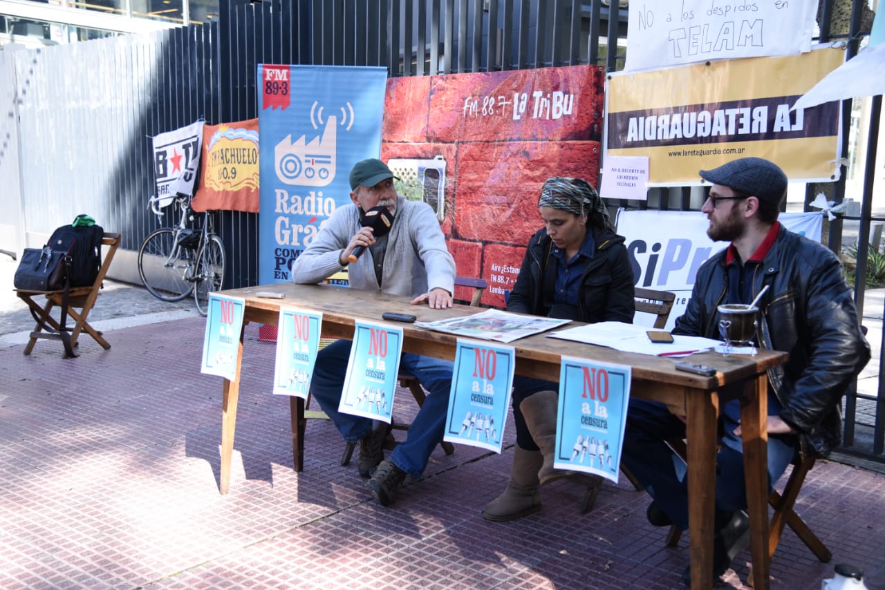 Tomás Eliaschev de Sipreba, se refirió al ataque sobre los medios públicos y comunitarios y expresó: ”Sin Medios públicos, y sin medios comunitarios que nos permiten enterarnos de lo que quieren ocultar, como el avasallamiento producido hoy sobre los trabajadores de Télam, que siguen resistiendo a los despidos, decimos que hay una guerra contra éstos medios y estamos en una misma lucha, por ello decimos que Sin Medios Comunitarios no hay Democracia, por esto estamos aquí para defenderlos”.