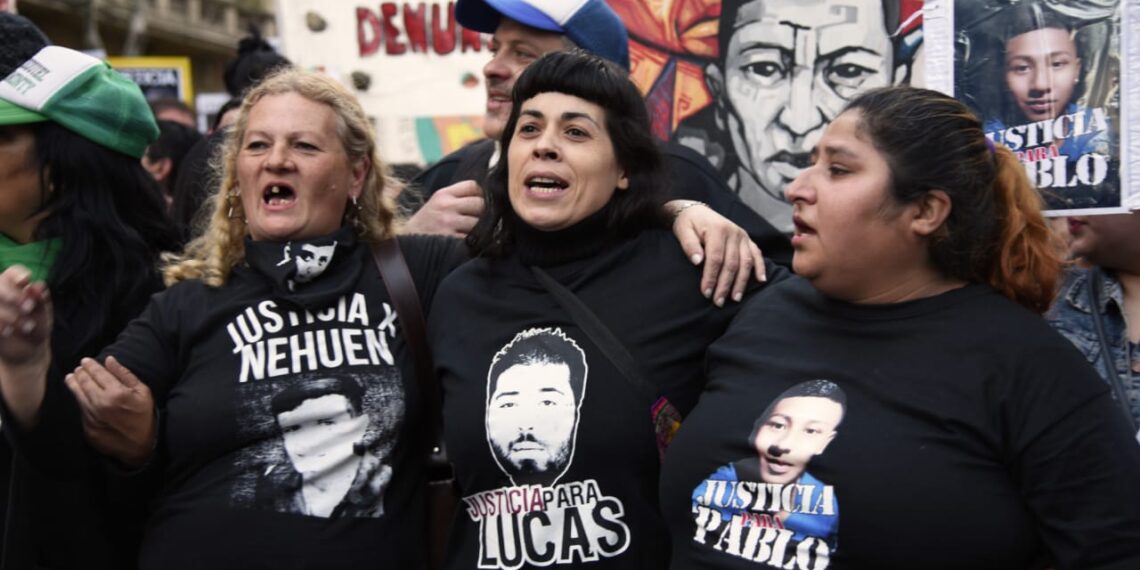 El sol entibia este invierno atroz. Son las 16 y el Congreso es testigo de una nueva marcha que nacerá hacia la Plaza de Mayo. Pero no será una marcha más. Ver la cabecera ya denota varias particularidades, difíciles de ver en otras situaciones similares. La primera línea es bien ancha. Va de vereda a vereda. Es horizontal. Nadie se aprieta contra la otra para que no la dejen atrás. Todo lo contrario; hay alguien, siempre, que abraza a la de al lado y la coloca a la par. Eso hace Roxana Cainzos, la mamá de Nehuen Rodríguez, con Ivonne, la madre de Juan Pablo Kukoc, el joven al que mató el nuevo héroe de la mano dura: el policía Luis Oscar Chocobar, que volvió a sus funciones la semana pasada. Ivonne apenas habla. Está viviendo su primera vez con otras mamás desesperadas, tristes y alegres a la vez.