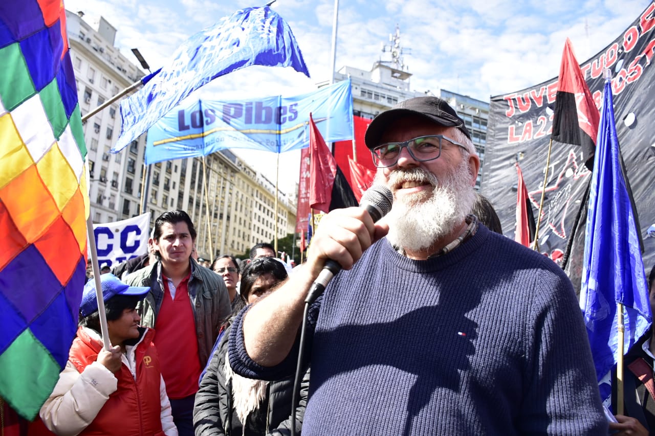 A solo metros de la asamblea abierta que sucedía en el Obelisco, en la Casa de la Provincia de Chubut, trabajadores se concentraron en sintonía con lo sucedido en Chubut, donde hace 50 días docentes y estatales mantienen una lucha contra el gobierno tanto provincial como nacional. Tras cartón esto se dió en un día fundamental para la resistencia patagónica, pues se cumple un nuevo aniversario de la masacre de Trelew, por lo que Lito Borello, que se acercó para manifestar su solidaridad como Secretario de DD.HH. de CTEP dijo: “cada vez que recordamos a compañeros y compañeras lo hacemos para entender que ese compromiso, esa manera de vivir, por construir otro mundo sigue vigente y los poderosos lo saben”. Por su parte, Carina Maloberti, de ATE-SENASA en conversación con la Riachuelo dijo “se necesita para las políticas públicas que vienen que las organizaciones sociales no solo sean columna, sino que sean cabeza de lo que viene”. Acto seguido les compañeres de ATE Y CTA Autónoma llamaron a unirse al resto de organizaciones que se encontraban en el Obelisco.