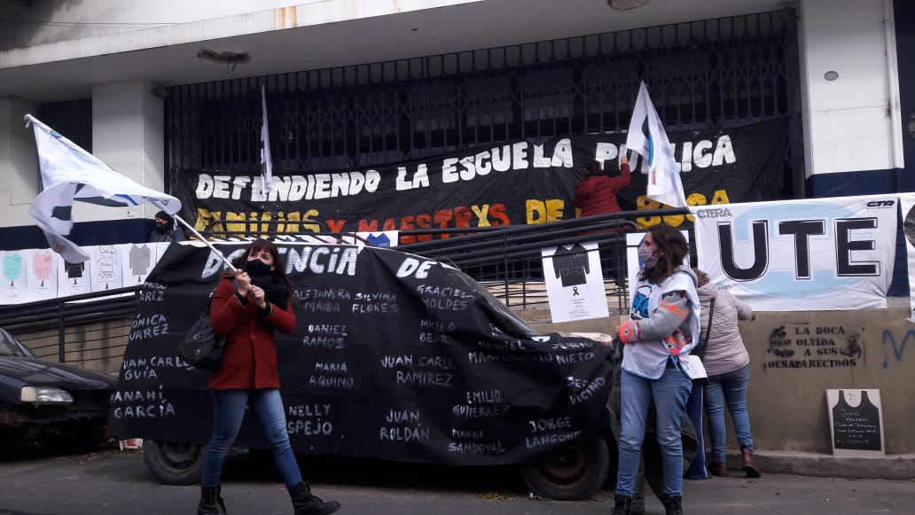 En el acto centrado en la consigna “Virtualidad para no enfermar”, tomó la palabra Pablo Rodriguez, docente de la escuela 14 D.E 4: “Estamos acá luchando contra este gobierno neoliberal quien nos impone la elección entre la vida y la muerte. Nos expone por una campaña electoral, por decisiones políticas que no nos consultan. Mientras se la pasan en los medios hablando de diálogo, y no existe el dialogo cuando el otro no escucha y nunca nos escuchó. Vemos la escuela casi vacía, todos con miedo de contagiarnos, pero la economía y sus negocios puede más que la vida lamentablemente. Nosotros siempre vamos a estar resistiendo y luchando por el pueblo para cuidarnos y no solo por Anita si no por todos los compañeros que siguen falleciendo y siguen padeciendo esta enfermedad. Sabemos que la virtualidad no es lo mejor pero esto es la vida y la muerte”.