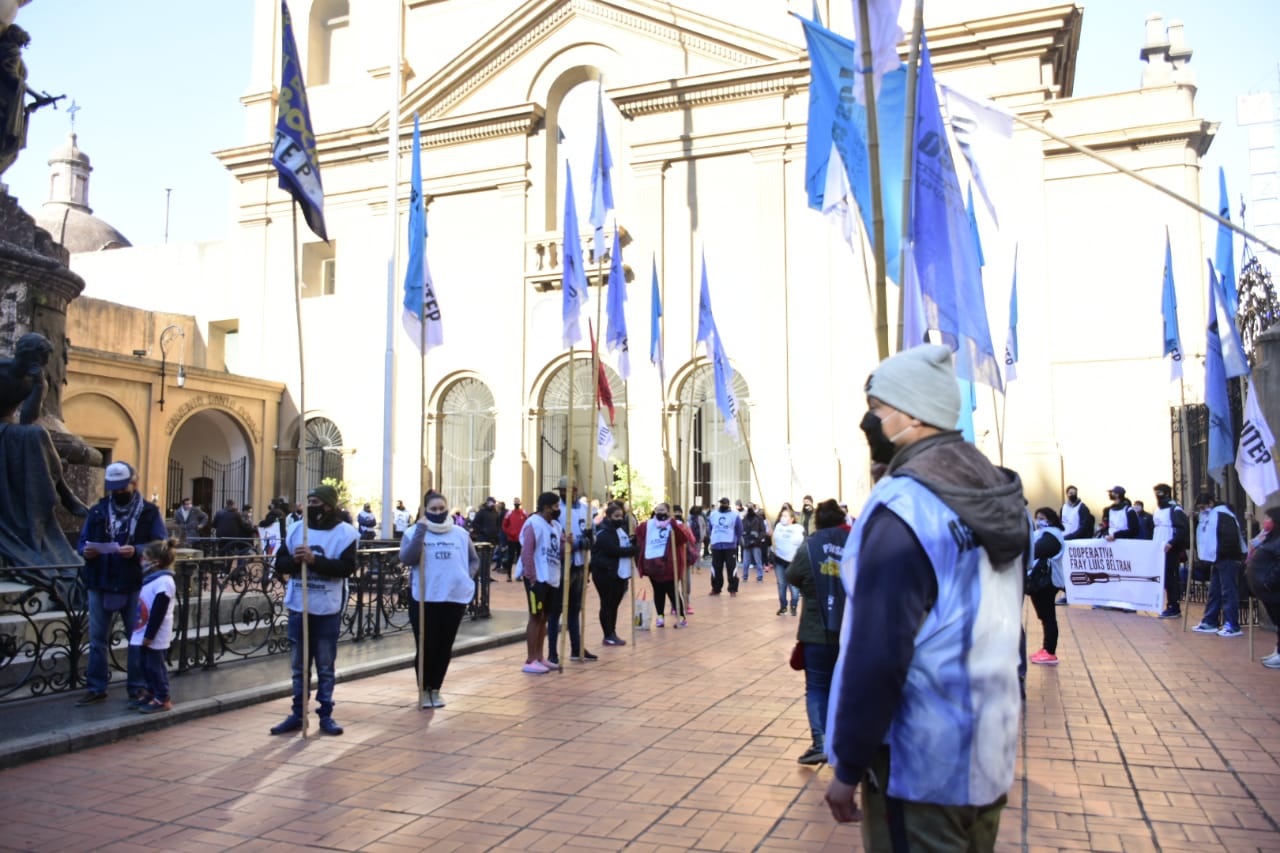 [FM Riachuelo, 20/5/2021] Esta mañana, el atrio de la Iglesia de Santo Domingo donde reposan los restos del General Belgrano, en el barrio de San Telmo, fue sorprendido por un homenaje que rompió un tanto el molde de los protocolares. Sin prisa, pero sin pausa, integrantes del Movimiento Popular Los Pibes fueron ubicándose junto al monumento, desplegando banderas y luciendo escarapelas al frente de sus ropas de trabajo que nombraban los emprendimientos de la Economía Popular a los que pertenecían.