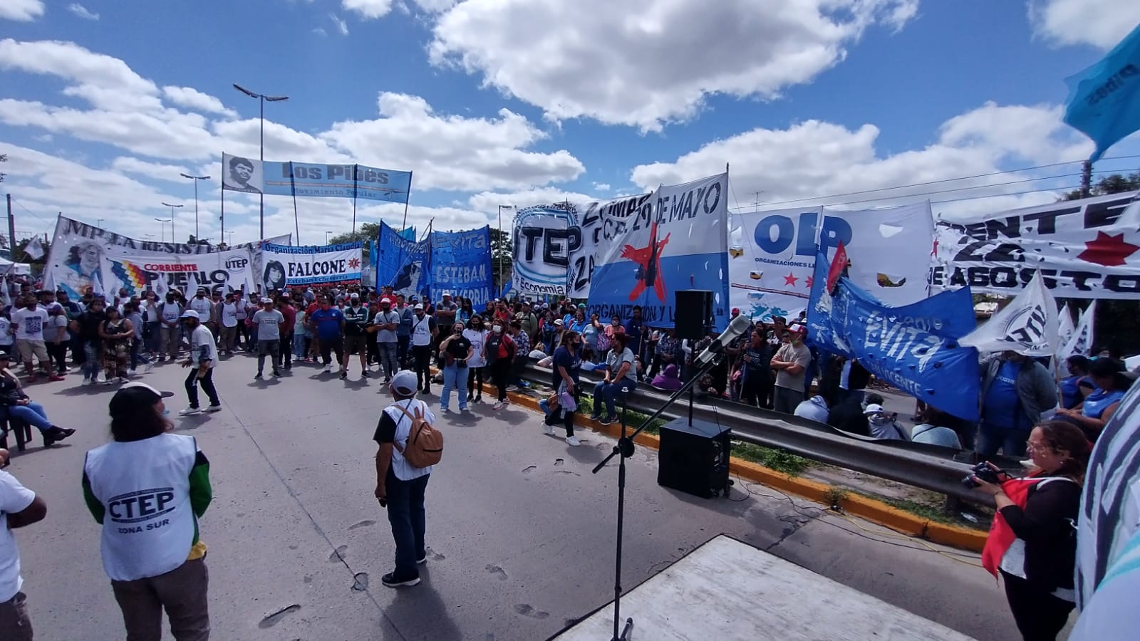 Sosteniendo las banderas de las organizaciones sobre el “Puente del Aguante”, cientos de trabajadores de la Economía Popular se juntaron para recordar a Javier Barrionuevo. Gladis Ialafi, de la Corriente Pueblo Unido abrió el acto haciendo un repaso por la jornada del 7 de febrero de 2002, cuando Javier fue asesinado por Batata Bogado, un puntero que pasaba con su auto junto al piquete que realizaban. «Acá estamos. Hace 20 años que venimos recordando a Javier Barrionuevo. Ese año nos encontraba sin trabajo, sin futuro, sin saber qué hacer con nuestros hijos. Javier se acercó ese día como tantos otros para saber qué pasaba. Se quedó. Nosotros lo único que podíamos ofrecer era un plato de guiso. Se hizo de noche, las compañeras empezaron a hacer tortafritas. Hasta ese momento estaba todo cuidado por la policía, pero después le dejaron el lugar libre a Batata Bogado, asesino dirigido para frenar una lucha«.